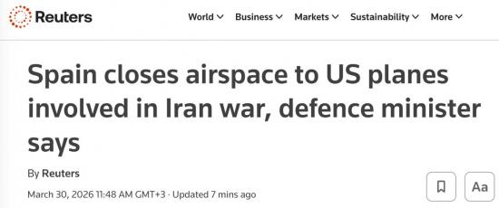 Испания закрыла своё воздушное пространство для американских самолетов, участвующих в ударах по Ирану