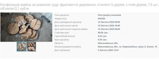 Исполнительная служба выставила на продажу шикарный лот, конфисковав у должника на Николаевщине… пень