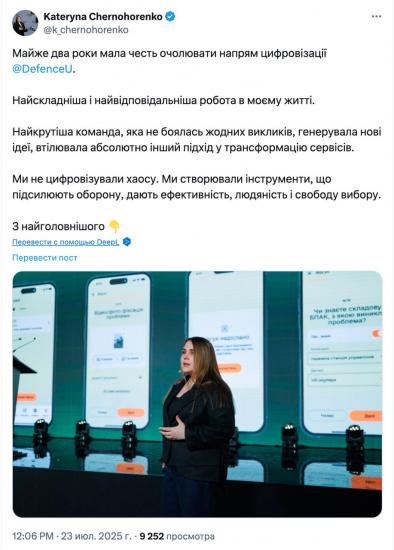 Из Минобороны уходит кураторша "Резерва" и руководительница "Армии дронов" - замминистра Черногоренко