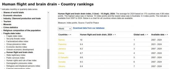 Страна оказалась на 7 месте в рейтинге The Global Economy по "оттоку мозгов".
