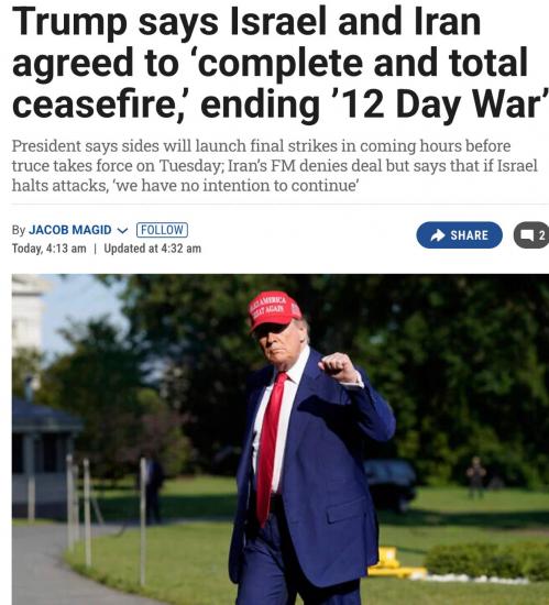 - Также читайте: Трамп заявил, что Израиль с Ираном достигли договоренности о прекращении огня (обновляется)
