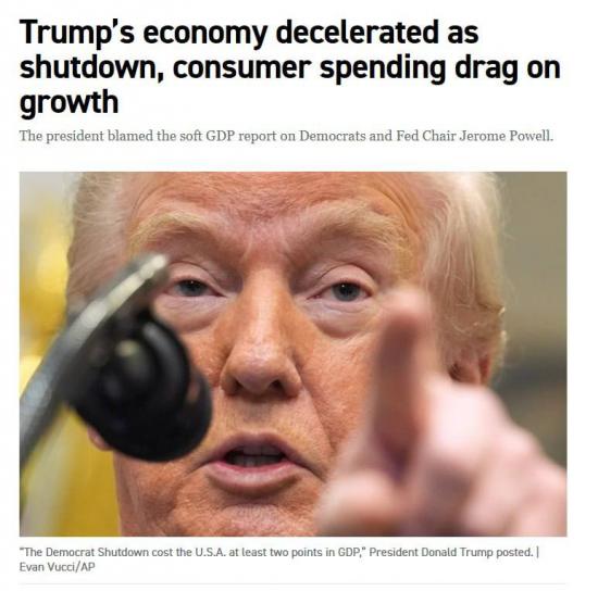 Сам Трамп обвинил в проблемах демократов, которые не голосовали за бюджет (что и привело к шатдауну), а также главу ФРС Пауэлла, который отказался снизить процентные ставки.