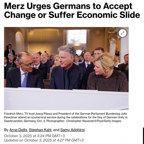 Канцлер Мерц призывает немцев либо принять жесткие реформы, либо пережить экономический спад, - Bloomberg