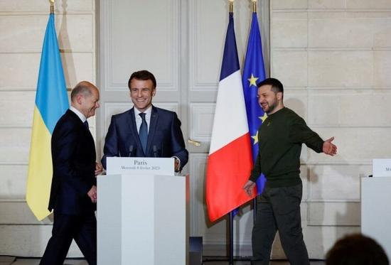 Украинский Президент Владимир Зеленский и Канцлер Германии Олаф Шольц, прибывшие в Париж, перепутали места во время совместной пресс-конференции с французским лидером Эмманюэлем Макроном.