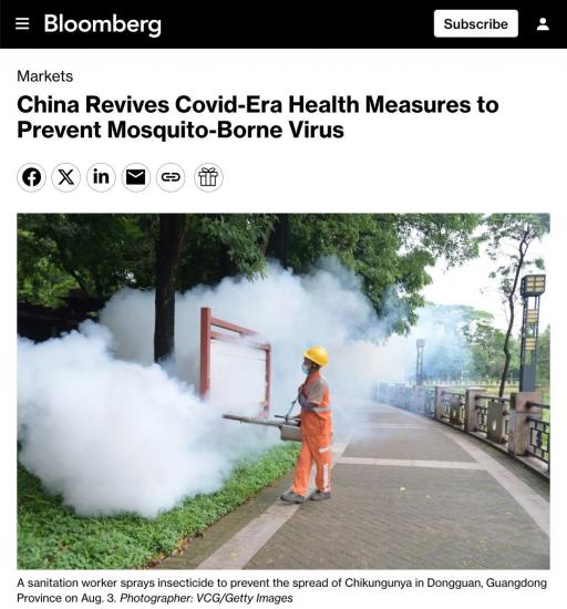 Китай снова вводит антиковидные меры из-за распространения вируса чикунгунья, - Bloomberg