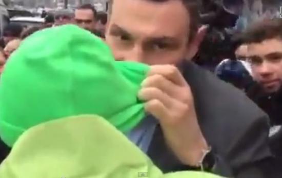 В соцсетях сообщают, что пикетчики стояли под КГГА несколько часов и в конце концов решили заблокировать дорогу. К ним вышел и столичный мэр Кличко. Он подошел вплотную к одному из митингующих, стащил с него шапку и сказал: "Я тебе в ухо крикну в следующий раз, понял". Когда же столичный мэр увидел, что активисты выходят на проезжую часть, то выругался и отправился их останавливать.