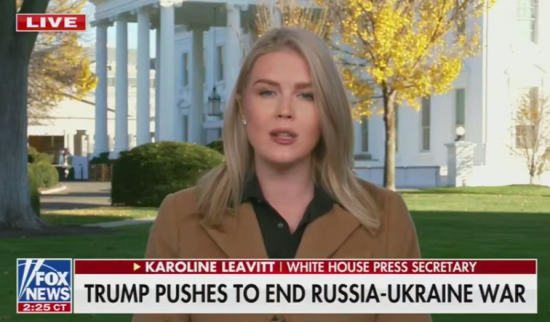 «Я наблюдала, как президент и его команда работали круглые сутки, всю ночь, с обеими сторонами – бесконечные телефонные звонки, бесконечные встречи – чтобы попытаться довести эту войну до завершения. И любые намёки на обратное – это полное непонимание фактов. Это исходит от людей, которые не имеют ни малейшего представления, о чём говорят, или от людей, которые продвигают собственную повестку, или, возможно, от людей, которые не хотят, чтобы эта война закончилась. Я не знаю. Может быть, они на этом зарабатывают. Может быть, они получают от этого какую-то выгоду. Но никто в этом здании не получает выгоду от войны. Мы хотим, чтобы эта война закончилась. И именно над этим президент и его команда гордо работают», – добавила Ливитт.