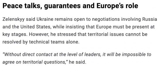 Напомним, территориальный вопрос будет ключевым на встрече в Абу-Даби 1 февраля, где соберутся делегации Украины и России. То есть, Зеленский заранее дает понять, что договоренностей там по теме территорий не достигнут.