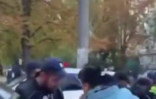 В Виннице толпа людей окружила полицейскую машину и потребовала освободить сидящего там мужчину