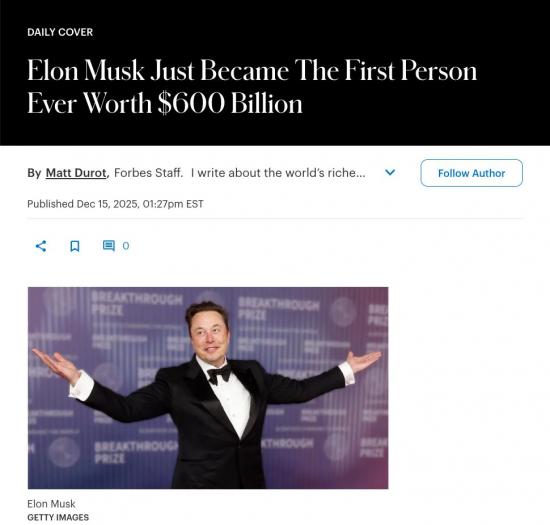 Маск стал первым человеком в истории с состоянием более $600 млрд, - Forbes
