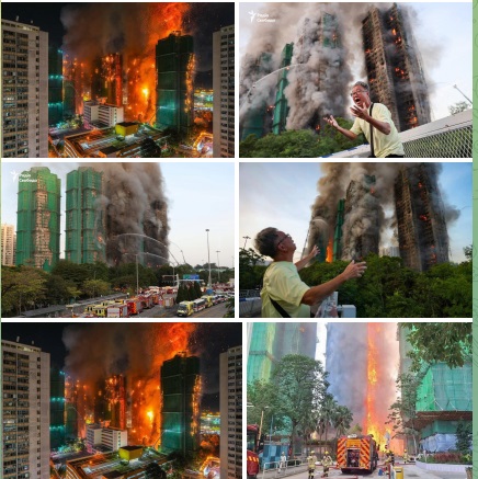 Причиной стало возгорание бамбуковых строительных лесов и сетки, которыми были окружены здания на время реновации.