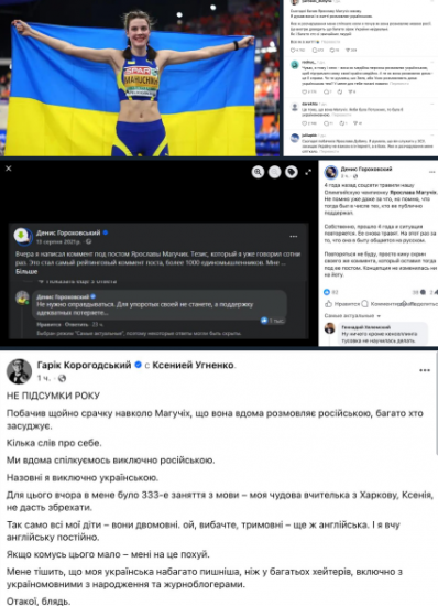 За Магучих заступился бизнесмен Гарик Корогодский. Он написал, что дома тоже общается только на русском, хотя в публичной сфере перешел полностью на украинский.