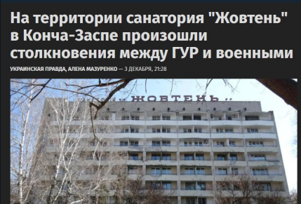 Между бойцами ГУР и ВСУ произошёл вооружённый конфликт на территории санатория «Жовтень» в Конча-Заспе, — УП