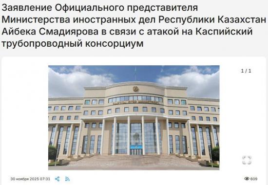 МИД Казахстана выразил протест Киеву из-за атаки украинских дронов на причал Каспийского трубопроводного консорциума в Новороссийске