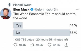 Новый глава «Twitter Илон Маск запустил опрос в подконтрольной ему соцсети, чтобы узнать у пользователей, должен ли Всемирный экономический форум в Давосе контролировать мир.