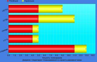Две трети всех сериалов на пяти самых рейтинговых украинских телеканалах демонстрируются на русском языке. Об этом заявили всекретариате уполномоченного по защите государственного языка Тараса Креминя.