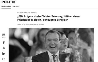 Экс-канцлер Германии Шрёдер заявил, что во время переговоров в Стамбуле Украина и Россия были готовы заключить соглашение о прекращении войны, но договоренности были сорваны «могущественными силами»