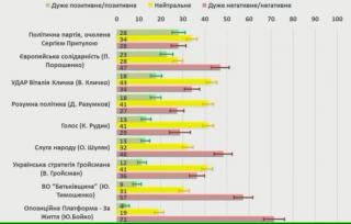Согласно результатам опроса Национального Демократического института и Киевского международного института социологии как негативное свое отношение к ВО «Батькивщина» оценили 57% украинцев, 31% выразил нейтральное отношение и 9% -...