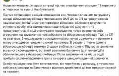 Черкасский областной ТЦК заявляет, что в Черкассах мужчина ударил топором по голове военкомов, которые его остановили для проверки документов, а также распылил в них газовый баллончик
