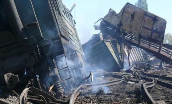 Неизвестные взорвали пути на участке "Иловайск–Кутейниково". В момент взрыва на перегоне находился грузовой поезд № 2921 с грузом. В результате взрыва с рельсов сошли 14 вагонов.