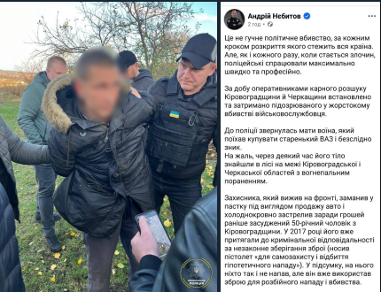Замглавы Нацполиции Небытов сообщает, что убийство было совершено ради денег. Убийца уже был судим в 2017 году за незаконное хранение оружия.