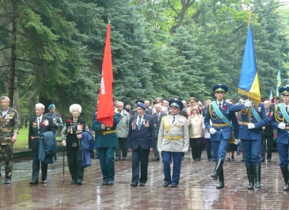 Цветы к памятнику Скорбящей Матери и братским могилам принесли сотни харьковчан - ветераны, городской голова Геннадий Кернес, его замы и другие сотрудники мэрии, а также областные чиновники, депутаты, силовики, правоохранители и военные.