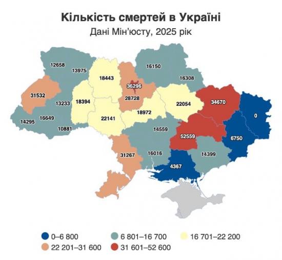 Общеукраинское соотношение составляет трое умерших на одного новорожденного, что свидетельствует о критическом демографическом дисбалансе.