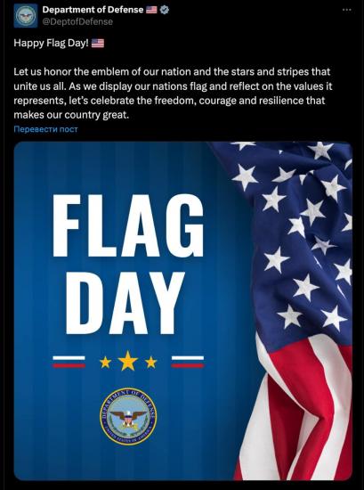 На официальном поздравлении Пентагона с днем флага США нашли два российских триколора