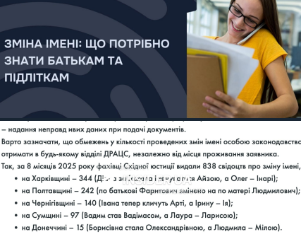 На Полтавщине мужчина взял матчество Людмилович, на Харьковщине Олег поменял имя на Инари, на Сумщине Вадим стал Вадимасом, — Минюст
