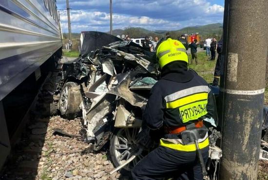 На Закарпатье легковой автомобиль «Audi A8» «попал под поезд» «Киев – Ужгород»