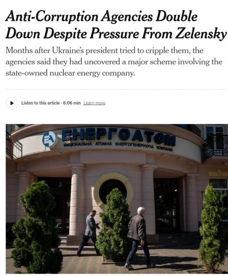 "Г-н Зеленский, избранный президентом в 2019 году, пришёл в политику, пообещав искоренить коррупцию, которая давно преследует Украину. Однако обвинения в инсайдерских сделках и коррупции продолжались и во время его президентства, особенно в энергетическом секторе", - добавляет NYT.