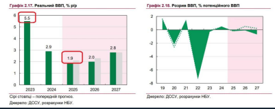 В связи с этим НБУ ухудшил свой прогноз по росту экономики Украины в 2025 году с 2,1% до 1,9%. Для сравнения: по итогам 2024 года увеличение ВВП было зафиксировано на уровне 2,9%, 2023-го — на 5,5%.