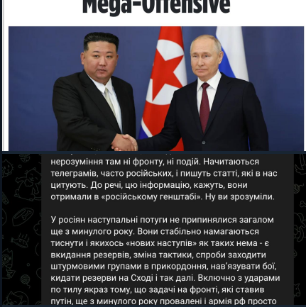 Издание сообщило, что «российский Генштаб представил Владимиру Путину план наступления во второй половине лета 2025 года». Для этого российские войска будут усилены контингентом из 30 тысяч северокорейских солдат.