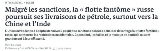 Несмотря на новые санкции против РФ, российский "теневой флот" продолжает поставки нефти в Индию и Китай, - Le Monde
