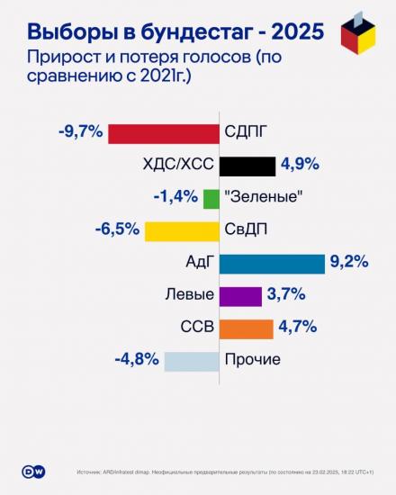 Ее прирост с момента предыдущих выборов в Бундестаг в 2021 году составил 9,2%.