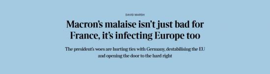 "Потрясённый чередой неудач в попытках сформировать коалиционные правительства, которые позволили бы ему провести реформы внутри страны и осуществлять французское лидерство за рубежом, Макрон большую часть второго срока находился на политическом аппарате жизнеобеспечения. Теперь же он выглядит опасно близким к тому, чтобы отключить его", - говорит Марш.