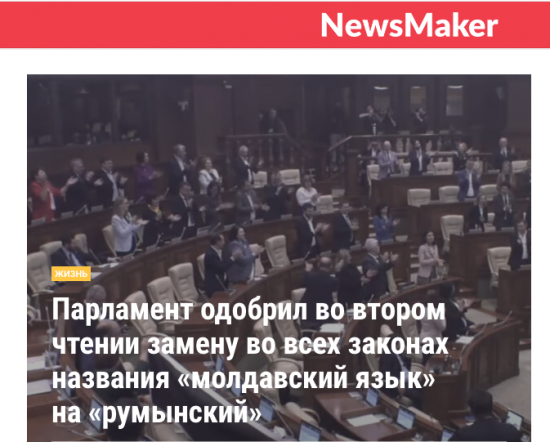 Парламент Молдовы принял в окончательном чтении законопроект, согласно которому "молдавский язык" фактически перестанет существовать и будет переименован во всех документах в "румынский язык".