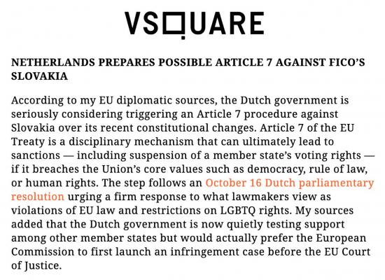 Парламент Нидерландов принял резолюцию с призывом к ответу за нарушения законодательства ЕС, а правительство страны согласно данными источников, всерьёз рассматривает возможность инициирования процедуры по 7-й статье Договора о ЕС.