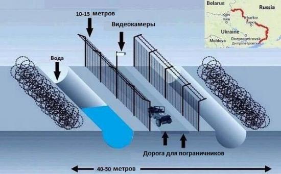 Следовательно, инженерный проект и технико-экономическое обоснование Днепропетровская облгосадминистрация уже передала на утверждение в администрацию Президента.Проект, передан для ознакомления и предусматривает установку в течение 5-6 месяцев сплошного металлического забора из высокопрочной стали и колючей проволокой.Подходы к проволоке должны преграждать рвами и колючей проволокой как с российской, так и с украинской стороны, чтобы исключить доступ к проволоке мирных жителей и животных. Ширина рвов и глубина должны обеспечить их недоступность для автотранспорта и бронетехники.Закрыт для проникновения случайных людей пространство между рвами и ограждением должен быть полностью заминированный сигнальными и противопехотными минами.По металлическому заборе может быть пропущен электрический ток.