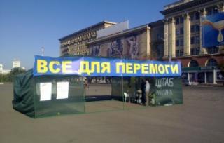 12 апреля, неизвестные пытались поджечь палатку харьковского Евромайдана "Все для перемоги", установленную на площади Свободы, напротив здания облгосадминистрации .
