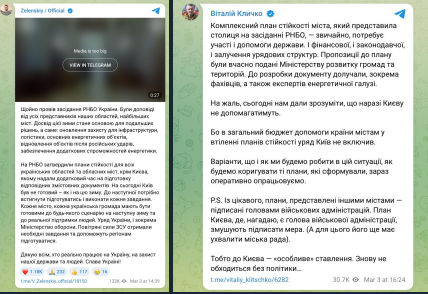 Зеленский по итогам заседания СНБО снова упрекнул мэра столицы в недостаточной подготовке к минувшей зиме, а также заявил, что Киев единственный не представил план подготовки к следующей зиме.