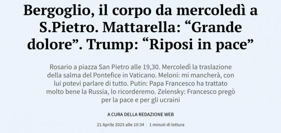 Папа римский после встречи с Зеленским призвал к "диалогу ради справедливого мира", - Sky TG24