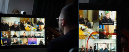 Офис президента опубликовал фото Зеленского, проводящего совещание в то время, как у него нет света, при этом на экране показали его же со светом