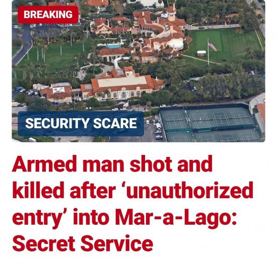 Охрана Трампа застрелила вооружённого мужчину, который пытался проникнуть в резиденцию Мар-а-Лаго, где находится имение президента США