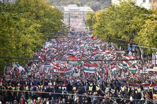 Во главе колонны идут вице-премьер Жолт Шемьен и известные общественные деятели. Мероприятие завершится у здания парламента, где перед собравшимися выступит сам Виктор Орбан, ради чего он пропустил начало саммита ЕС в Брюсселе.
