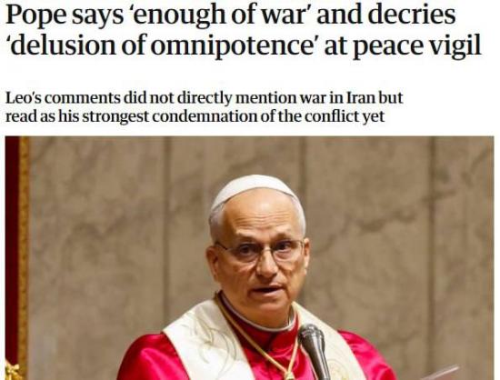 Папа Лев XIV заявил, что нападение США на Иран произошло из-за "иллюзии всемогущества"