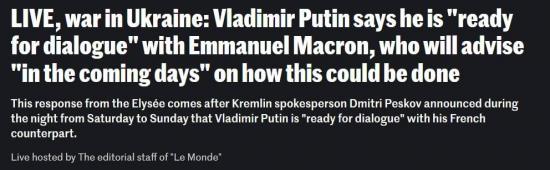 Французская администрация президента сочла «приветствуемым» предложение президента России Владимира Путина «готовиться» к переговорам со своим коллегой Эммануэлем Макроном, добавив, что она сообщит «в ближайшие дни», как это можно сделать.