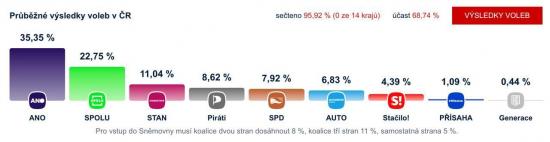 Кроме того, довольно вероятно, у них могут появиться союзники из партии Motoristé sobě («Автомобилисты для себя») - это евроскептики, выступающие против ограничений на топливные автомобили и «зеленой» повестки. У нее 6,8% голосов, что дает вероятной «коалиции Бабиша» почти 50% в парламенте страны. С учетом перераспределения голосов непрошедших это большинство.