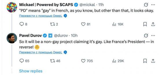 «Значит, это будет негейский проект, который будет выдавать себя за гейский. Как президент Франции - только наоборот», - ответил Дуров.