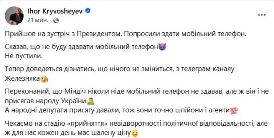 «Наши источники сообщают, что план Ермака заставить фракцию сегодня уволить Давида Арахамию провалился.